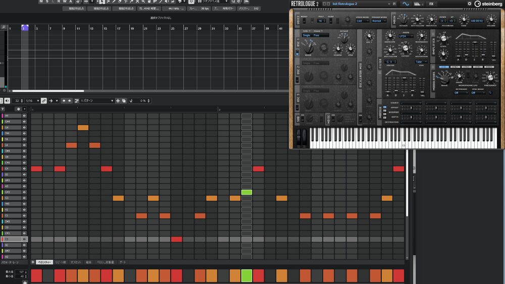 お気に入りのシンセサイザーを使って、ドラムはもちろん、メロディックなアルペジオやリフなどを完結できるのは良いですね。