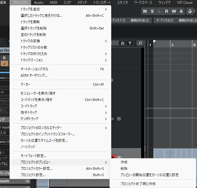 プロジェクトの設定→プロジェクトのプレビューを作成しておくことで、Cubase Hub上で短時間のプレビューを聴くこと可能になります。
