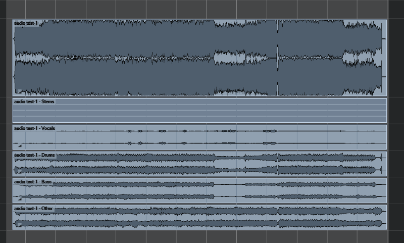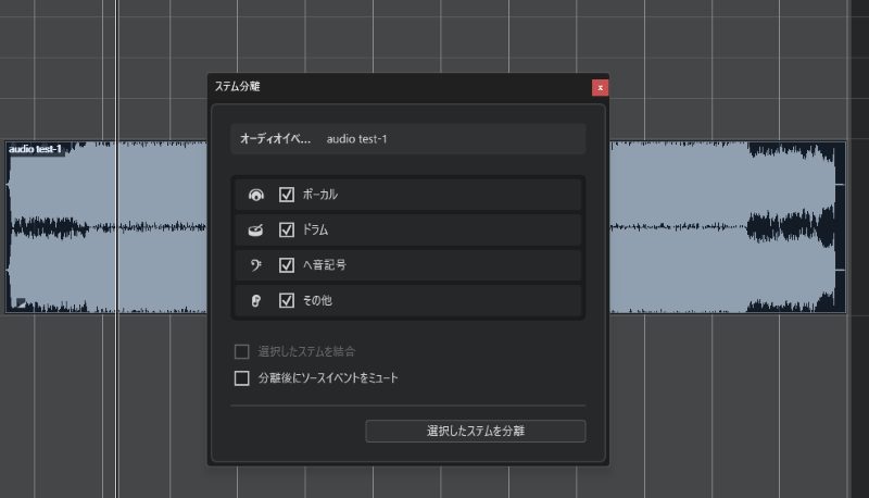 分離完了したオーディオファイルは、Cubase上に個別に作成されるので、即座にミックス調整やエフェクト処理を始めることができます。